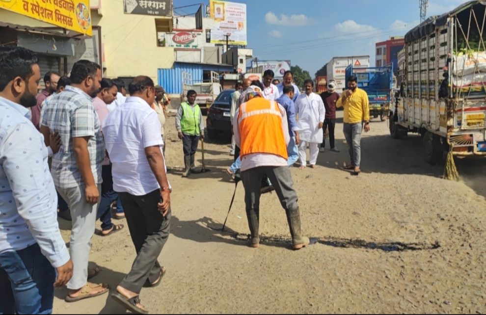 आंदोलन स्थळीच डांबर व खडी आणून प्राथमिक स्वरूपात खड्डे बुजवण्याचे काम तत्काळ सुरू करण्यात आले.